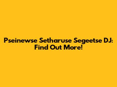 Pseinewse Setharuse Segeetse DJ: Find Out More!