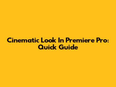 Cinematic Look In Premiere Pro: Quick Guide