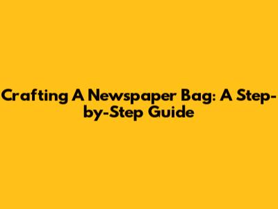 Crafting A Newspaper Bag: A Step-by-Step Guide
