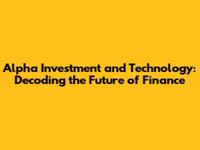 The Future of Alpha Investment and Technology