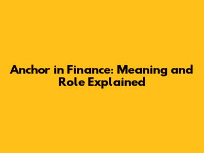 Understanding the Anchor Concept in Finance