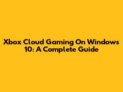 Xbox Cloud Gaming On Windows 10: A Complete Guide