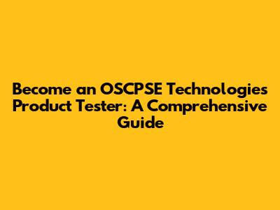 How to Become an OSCPSE Technologies Product Tester