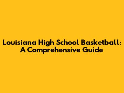 Louisiana High School Basketball: A Comprehensive Guide