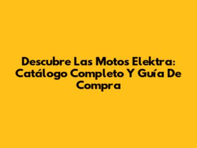 Descubre Las Motos Elektra: Catálogo Completo Y Guía De Compra