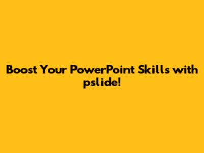 Hey there, presentation enthusiasts! Ever feel like your PowerPoint skills could use a serious upgrade? Do you want to wow your audience and leave a lasting impression? Well, you're in luck! Today, we're diving deep into the world of pslide, a fantastic tool that can help you transform your PowerPoint presentations from blah to brilliant. Get ready to learn how to elevate your slide game and become a PowerPoint pro! We'll cover everything from the basics to advanced tips and tricks, ensuring you're equipped to create presentations that truly stand out. So, buckle up, grab your virtual pen, and let's get started on this exciting journey to PowerPoint mastery! We'll explore the features of pslide, how it can help you with your presentation needs and strategies to make your slides more impressive.