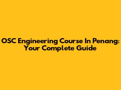 OSC Engineering Course In Penang: Your Complete Guide
