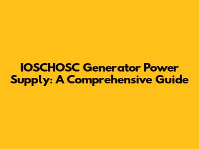 IOSCHOSC Generator Power Supply: A Comprehensive Guide