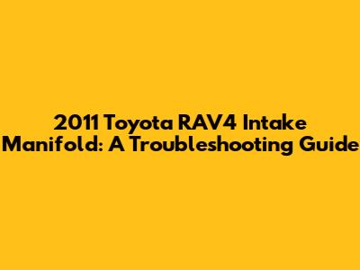 2011 Toyota RAV4 Intake Manifold: A Troubleshooting Guide