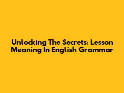 Unlocking The Secrets: Lesson Meaning In English Grammar