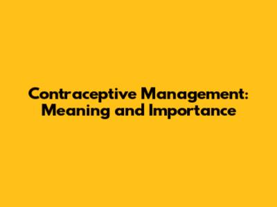 Understanding Contraceptive Management