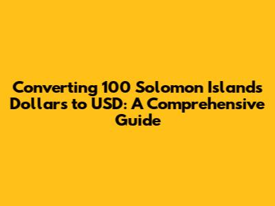 Hey guys! So, you're looking to figure out how much 100 Solomon Islands Dollars (SBD) is worth in United States Dollars (USD), huh? Awesome! You've come to the right place. This guide is all about helping you understand the Solomon Islands Dollar to USD conversion, providing you with the knowledge you need, and giving you some handy tips along the way. Let's dive in and make sure you're well-equipped to navigate those currency conversions like a pro. Currency exchange can seem confusing at first, but with a little understanding, you'll be converting currencies with ease. We'll break down everything you need to know, making it super simple to understand the SBD to USD exchange rate.