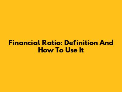 Financial Ratio: Definition And How To Use It