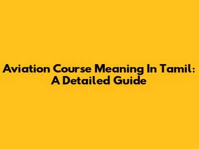 Aviation Course Meaning In Tamil: A Detailed Guide