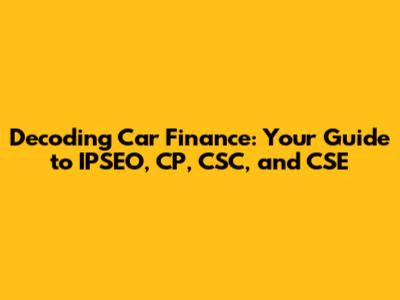 Hey guys! Ever felt like the world of car finance is a confusing maze of acronyms and jargon? You're definitely not alone! Buying a car is a big deal, and understanding how you're paying for it is super important. That's where we come in. We're going to break down some key terms related to car finance, specifically focusing on the acronyms IPSEO, CP, CSC, and CSE. By the end of this article, you'll be navigating the car finance landscape like a pro. We'll explore what each of these terms means, how they relate to each other, and why they matter to you, the car buyer. Getting a grip on these concepts will empower you to make informed decisions, negotiate effectively, and ultimately, drive off in your dream car without any financial headaches. So, buckle up, and let's dive into the fascinating world of car finance! We'll explain these acronyms in plain English, so you can ditch the confusion and start feeling confident about your car-buying journey. This guide is designed to be your go-to resource, providing clarity and demystifying the complexities of car finance. Ready to decode the secrets? Let's get started!