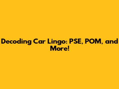 Ever feel lost in a sea of car acronyms and abbreviations? You're not alone! The automotive world is full of them, and understanding what they mean can be super helpful, whether you're buying a new car, getting your current one serviced, or just trying to impress your friends with your car knowledge. Let's break down some common car lingo, including those mysterious terms like PSE, POM, and more, making it easier for everyone to navigate the world of cars.