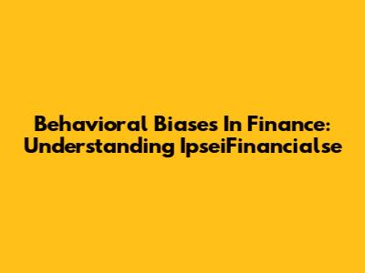 Behavioral Biases In Finance: Understanding IpseiFinancialse