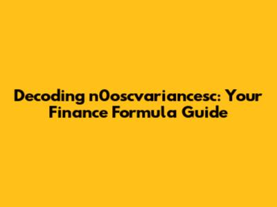 Hey finance enthusiasts, let's dive headfirst into the world of n0oscvariancesc finance formula! We're talking about a concept that can seem a bit intimidating at first glance, but trust me, once you break it down, it's totally manageable. So, what exactly is n0oscvariancesc, and why should you care? Well, in the financial realm, this formula, or rather the principles behind it, helps us understand and manage risk related to various financial instruments. Think of it as a tool in your financial toolbox, helping you make smarter decisions. In this guide, we'll explore the core components, their significance, and how they impact your financial strategies. This exploration will cover the fundamentals of how these variances are calculated, how they are used in practical contexts, and what you need to consider when applying these formulas. It’s all about empowering you with the knowledge to make informed decisions and better navigate the complexities of financial markets.