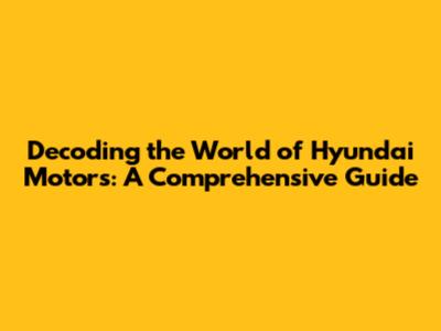 Hey car enthusiasts! Ever wondered about the inner workings of your Hyundai? Or maybe you're just curious about what makes this global automotive giant tick? Well, buckle up, because we're about to dive deep into the world of Hyundai Motors. We'll explore everything from its humble beginnings to its current status as a powerhouse in the automotive industry. This guide is your one-stop shop for understanding Hyundai, its history, its innovations, and, of course, how to keep your ride running smoothly. Get ready for an informative and engaging ride! Let's get started. We'll be looking at everything from the history of Hyundai Motors, to their current lineup of vehicles, to the innovative technologies that they are using. We'll also be taking a look at the future of Hyundai and what we can expect from them in the years to come. So, whether you're a current Hyundai owner, or you're just thinking about buying one, this guide is for you. Get ready to learn all about the exciting world of Hyundai Motors! We're going to cover everything from the company's early days in South Korea to its rise as a global automotive leader. We'll also take a look at the innovative technologies that Hyundai is using to stay ahead of the curve. And of course, we'll talk about the different models that Hyundai offers and what makes each one unique. So sit back, relax, and get ready to learn all about the exciting world of Hyundai Motors! We'll start with a quick overview of the company's history. Then, we'll dive into the different models that Hyundai offers. Finally, we'll take a look at the future of Hyundai and what we can expect from them in the years to come. So, without further ado, let's get started!