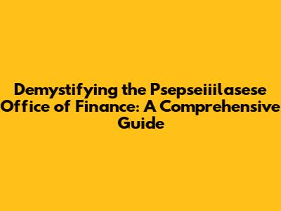 Hey there, finance enthusiasts! Ever heard of the Psepseiiilasese Office of Finance? If you're scratching your head, you're not alone. Navigating the world of finance can feel like wandering through a maze, and governmental entities like this one sometimes add to the complexity. But don't worry, guys! We're going to break down everything you need to know about the Psepseiiilasese Office of Finance, making it easy to understand even if you're a complete beginner. Get ready for a deep dive that will leave you feeling confident and informed. Let's get started!