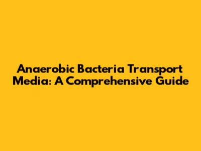 Anaerobic Bacteria Transport Media: A Comprehensive Guide