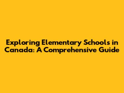 What are Elementary Schools in Canada All About?