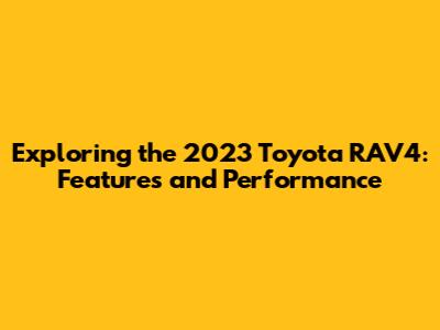 The 2023 Toyota RAV4 is a well-rounded and versatile compact SUV that offers a compelling combination of practicality, reliability, and modern features. Its bold exterior design, comfortable interior, and capable performance make it an excellent choice for families and individuals alike. With a range of trim levels and available features, the RAV4 can be customized to suit a variety of needs and preferences. Whether you're looking for a fuel-efficient commuter, a family-friendly SUV, or a capable off-roader, the 2023 Toyota RAV4 has something to offer.
