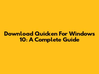 Download Quicken For Windows 10: A Complete Guide