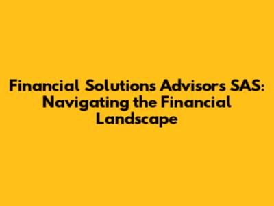 Financial Solutions Advisors SAS: Navigating the Financial Landscape