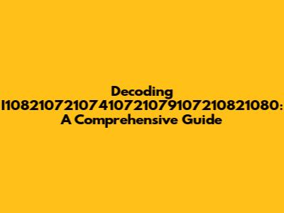 Decoding I10821072107410721079107210821080: A Comprehensive Guide