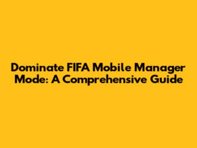 Dominate FIFA Mobile Manager Mode: A Comprehensive Guide