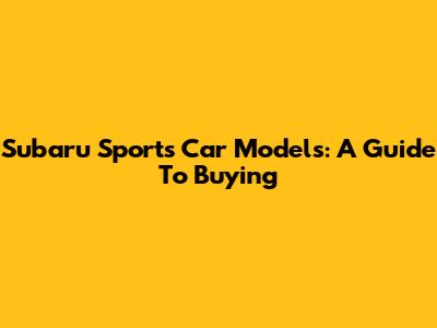 Subaru Sports Car Models: A Guide To Buying