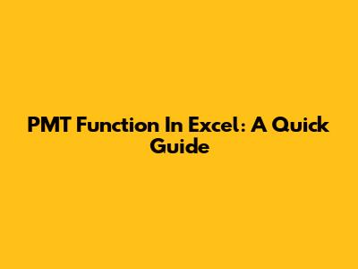 PMT Function In Excel: A Quick Guide