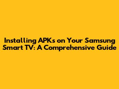 So there you have it! Installing APKs on your Samsung Smart TV can open up a world of new possibilities. Just remember to be careful and follow these steps, and you'll be enjoying your favorite apps in no time. Happy viewing!