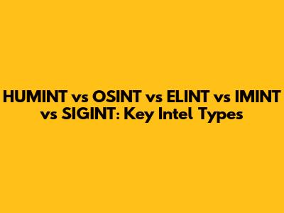 Understanding the different types of intelligence is crucial in today's world, where information is power. Whether you're in the military, law enforcement, business, or just a curious individual, knowing the ins and outs of HUMINT, OSINT, ELINT, IMINT, and SIGINT can give you a significant edge. In this article, we'll break down each of these intelligence disciplines, explore their unique characteristics, and illustrate how they're used in practice. So, let's dive in and unravel the mysteries of these essential intel types, guys!