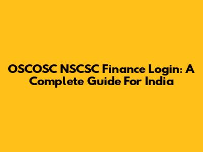 OSCOSC NSCSC Finance Login: A Complete Guide For India