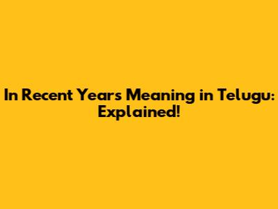 Understanding "In Recent Years" in Telugu