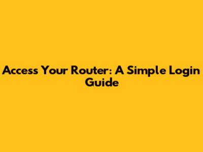 Access Your Router: A Simple Login Guide