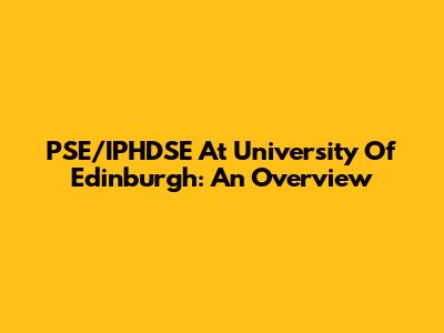 PSE/IPHDSE At University Of Edinburgh: An Overview