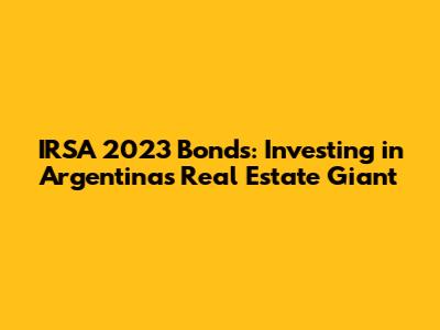 Are you looking to diversify your investment portfolio and explore opportunities in the Latin American market? Then let's dive into the world of IRSA 2023 bonds. IRSA, Argentina's largest real estate company, issued these bonds, offering a unique avenue for investors. This article will provide a comprehensive look at these bonds, their features, and the potential benefits and risks associated with investing in them. Understanding the nuances of these bonds is crucial for making informed investment decisions.