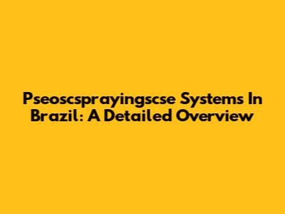 Pseoscsprayingscse Systems In Brazil: A Detailed Overview