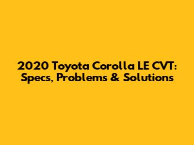 2020 Toyota Corolla LE CVT: Specs, Problems & Solutions