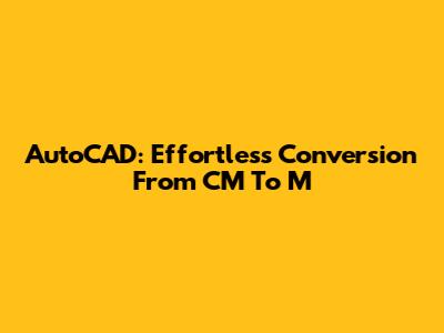 AutoCAD: Effortless Conversion From CM To M
