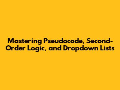 Hey guys! Let's dive into some cool stuff: pseudocode, second-order logic, and dropdown lists. Sounds a bit techy, right? Don't sweat it; we'll break it down so even your grandma can understand it (maybe!). This article will be your go-to guide, offering insights and practical knowledge to help you not just grasp these concepts but also use them effectively. We will cover each concept in detail, providing real-world examples and practical advice. We will start with a general overview and then delve into specifics, ensuring you get a solid understanding of each topic. Ready to level up your knowledge? Let's get started!