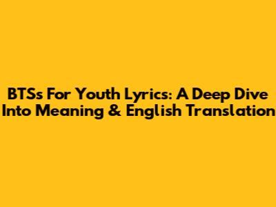 BTS's 'For Youth' Lyrics: A Deep Dive Into Meaning & English Translation