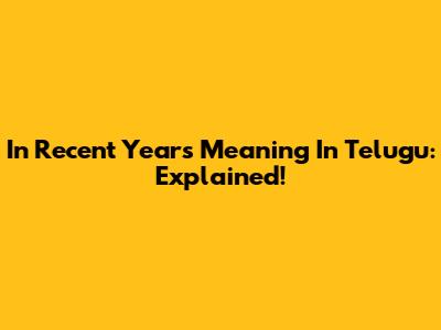 In Recent Years Meaning In Telugu: Explained!