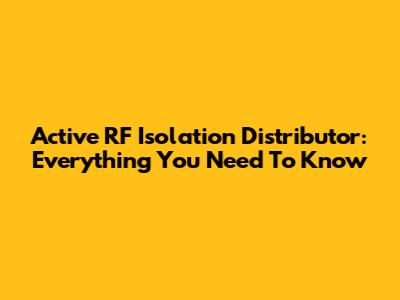 Active RF Isolation Distributor: Everything You Need To Know