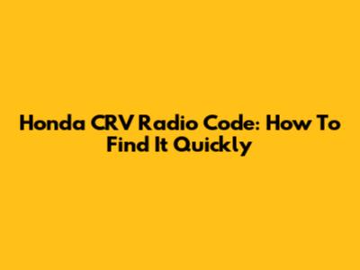 Honda CRV Radio Code: How To Find It Quickly