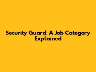 Security Guard: A Job Category Explained