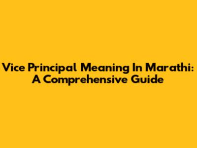 Vice Principal Meaning In Marathi: A Comprehensive Guide